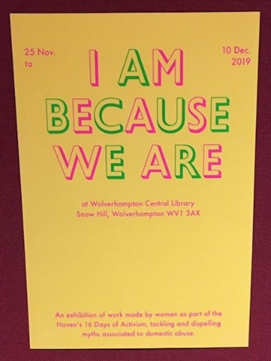 The Haven refuge, I Am Because We Are at Wolverhampton library, September to November 2019